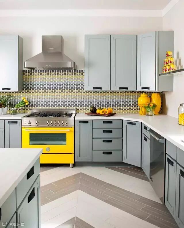 周边橱柜都用了鲜艳黄