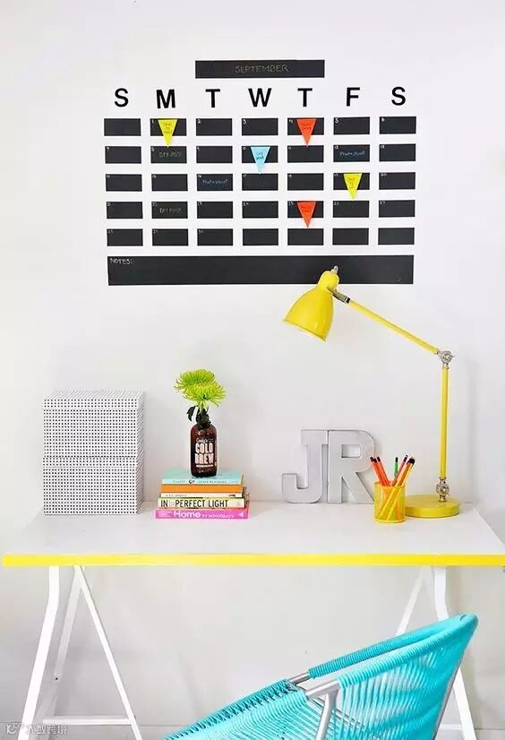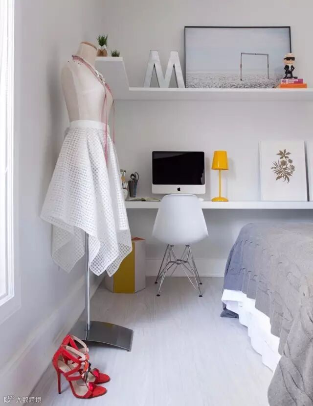 白色的书桌台装上亮眼黄台灯