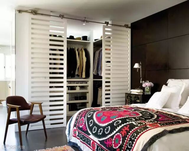【亮点】利用一面内嵌式的墙,用隔板、横杆分出不同的功能区,最妙的便是这镂空的滑门,节省空间的同时实在美到不行。