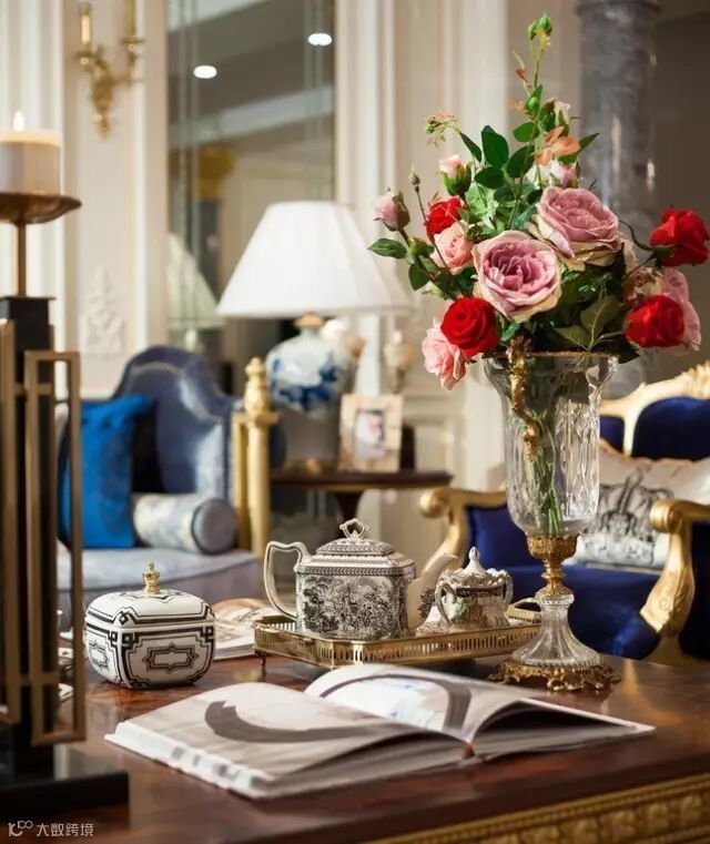 与此呼应的是同样玲珑纤巧的家具,深得洛可可细腻华丽的精髓,从S型芭蕾舞者椅腿,到涡旋、贝壳曲线的雕饰,无不以婀娜身姿,在优美线条的起伏回旋中展现出生活与美学交融的极致。