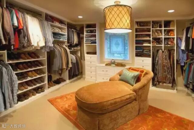根据存储衣物的大小以及使用频率来分,衣帽间内应该分别设立叠放区、悬挂区、被褥区、鞋袜区、箱包区、收纳区等空间。步入式衣帽间的主要作用是用来存储衣物、被褥等物品。因此,合理的格局设计,能够帮我们达到更好的收纳效果哦。