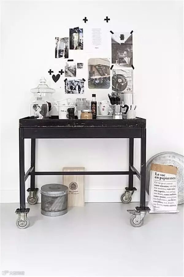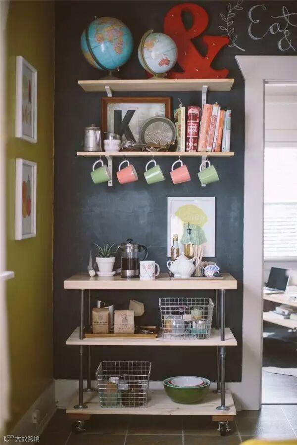 找一个合适的角落,腾出大概一平方米的空间,摆上一张小木桌或者是推车、置物架,再在上面搁置咖啡机、咖啡豆,还有一些平时从四处淘来的瓶瓶罐罐和咖啡杯,这就打造出了一个充满文艺小资情调的迷你咖啡馆。每天清晨,在这里自己煮上一壶咖啡,清香四溢,这时候你还会想要去外面的咖啡店排队吗?