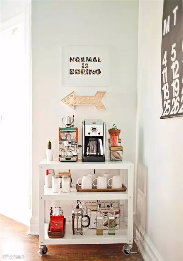 相信几乎每个女生都曾有过开个咖啡馆的梦想,如果这个梦想还未实现,那么可以先在自己的家里打造一个专属的咖啡角过过瘾好了。