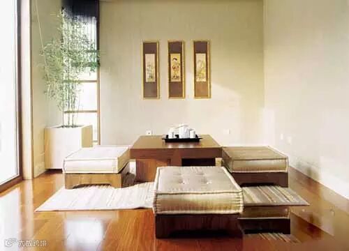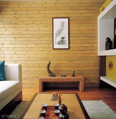实木让人感觉亲切,它也是中式空间里使用最多的材料。与其相近的木色系可以运用在墙壁、地面、边桌和茶几上,材料可使用桑拿板、实木或强化地板,家具则有藤、木、竹等多种选择。但一定要注意不要满室皆是木,这样会太刻板,让人透不过气,可以选择简洁的白色与其搭配,干净的颜色让人倍感清爽。