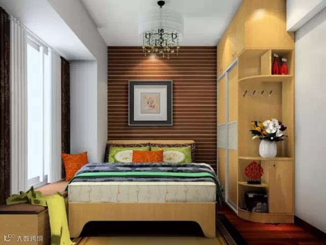 设计师支招:卧室有限的空间增加储物功能,可以考虑使用上层空间,在床头和窗边等设计吊柜,增加部分储物空间。
