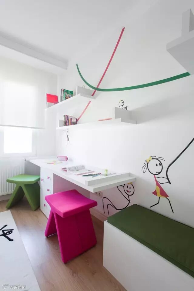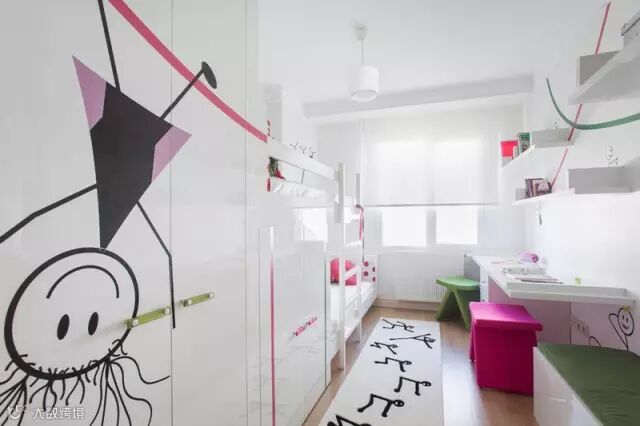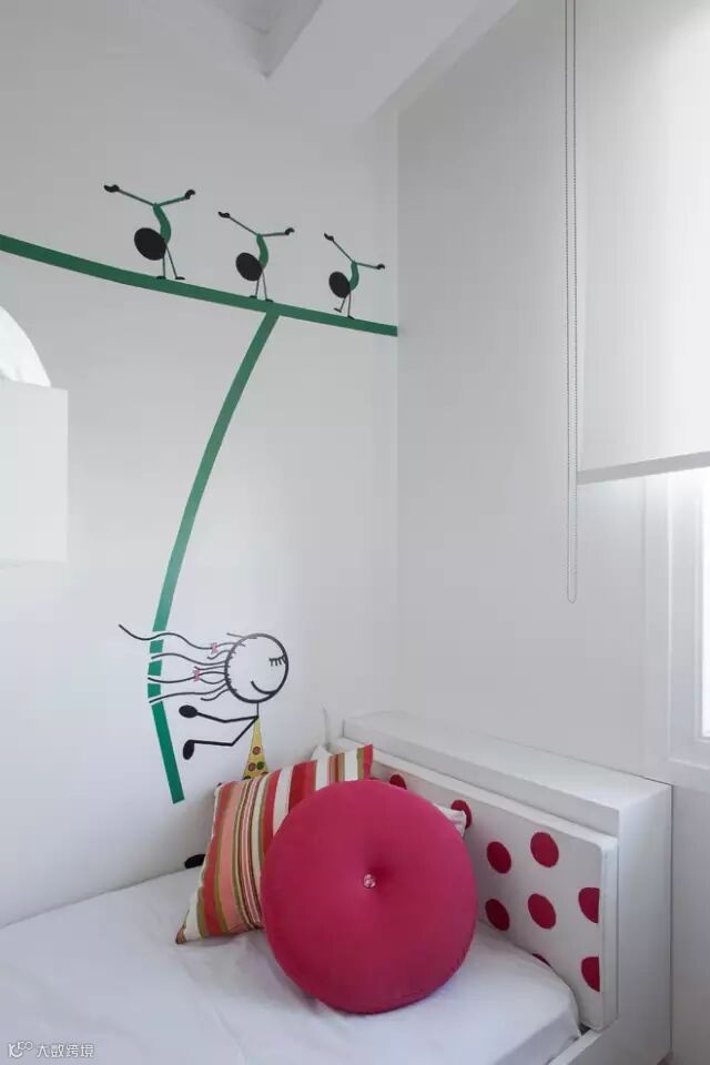 可爱墙绘的纯白女孩卧室设计