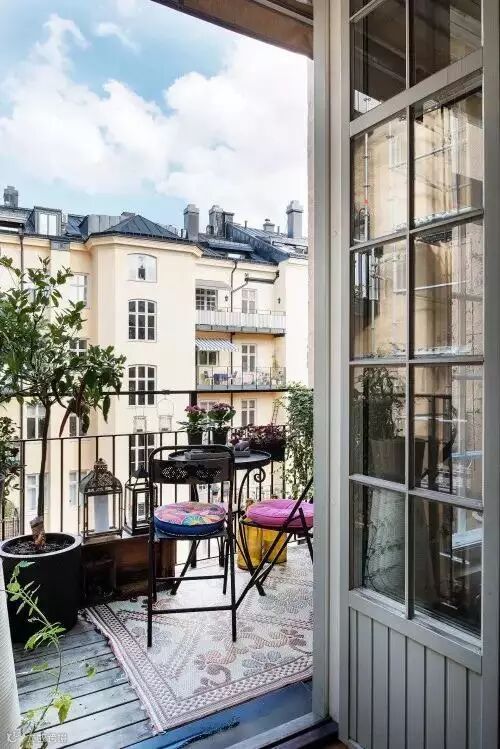 但是阳台它的功能并不仅限于此,它也可以作为休闲娱乐的地方。也就是说,你可以将此处设计为实用与美观兼具的地方,摆上一个茶几,立几张椅子,便可与友秉烛畅谈了,于是,没有花园又怎样,我们有一阳台。