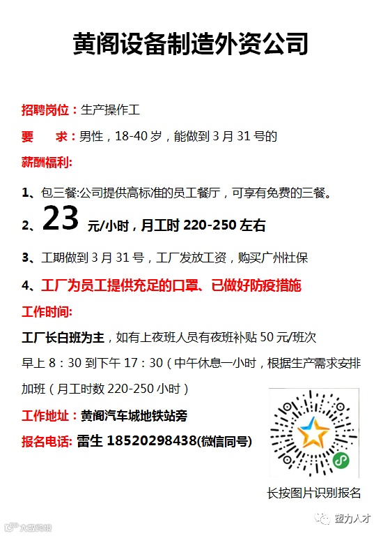 长按图片识别填表报名即可,收到电话通知即可14号入职!