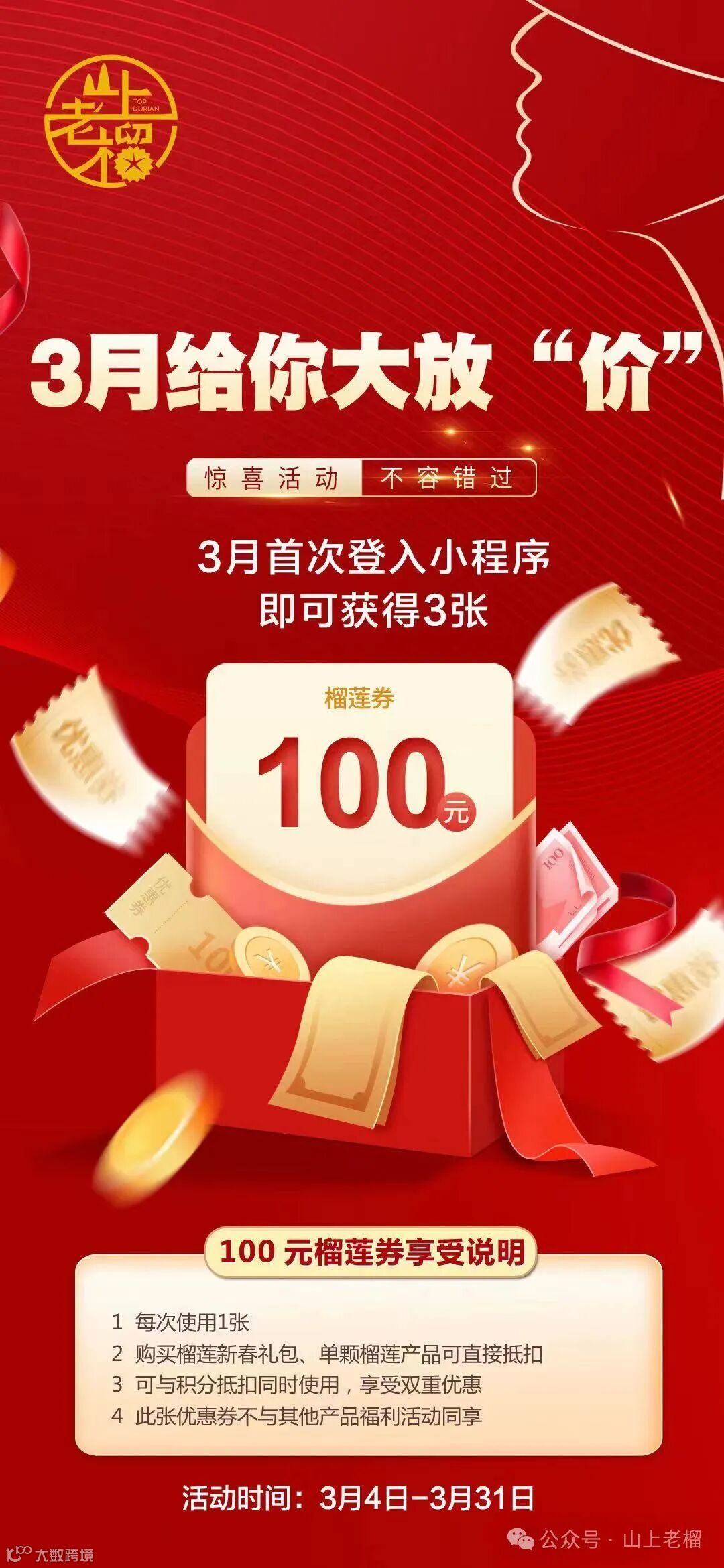 2、购买榴莲新春礼盒、单颗榴莲产品可直接抵扣,除此之外不与其他产品福利活动同享;