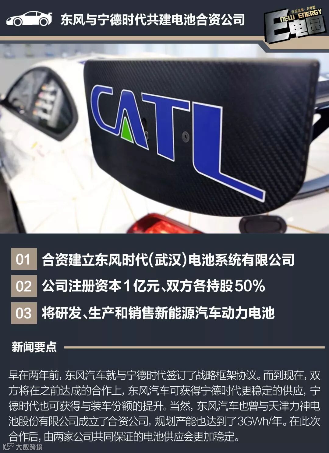 E点评:东风时代是继宁德时代与上汽集团成立两家合资公司之后的又一家主机厂与电池厂合作的产物,这标志着东风汽车与宁德时代的合作程度进一步升级,可能对国内的动力电池市场格局产生极大影响。