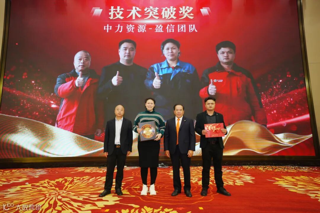 兴奇集团常务副董事长、中力资源董事长陈湛枝、兴奇集团副董事长、兴奇新材料董事长陈贺枝、兴奇集团董事、中力资源总经理李健忠、兴奇集团执行董事陈焕枝分别为先进团队奖获奖团队颁发荣誉奖牌。