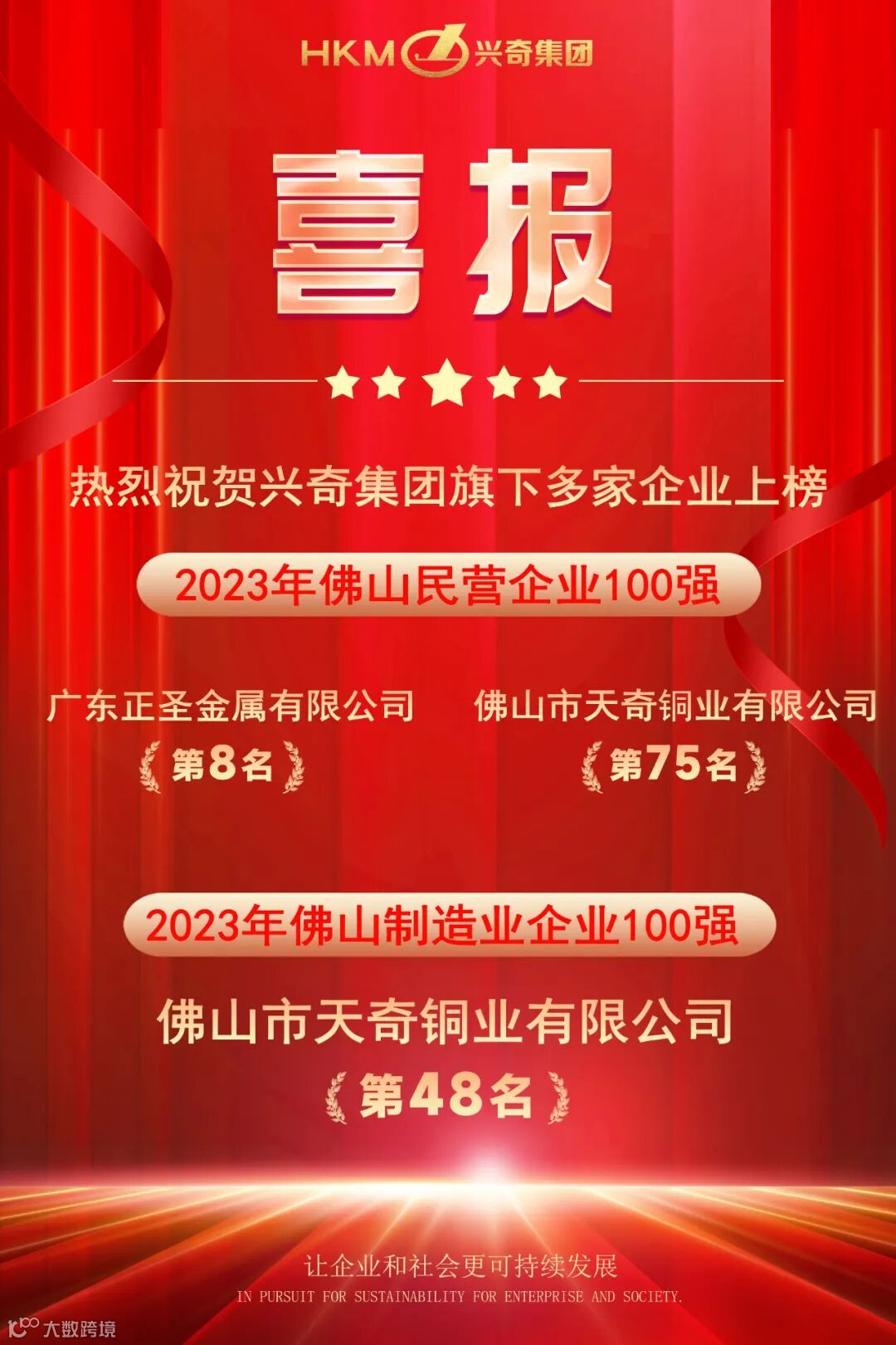 佛山企业100强榜单在提振企业信心的同时也为政府制定支持企业高质量发展政策、佛山产业结构优化提供了参考依据。未来,兴奇集团将进一步发挥行业标杆作用,不断提升金属资源优化配置的综合服务能力,加大对有色金属制造供应链、新材料制造的投资力度,为佛山本地经济高质量发展、求变励新、谋变布局贡献力量。