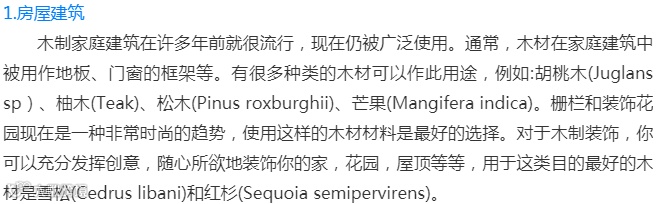 木材有多种用途,自古就被人类广泛使用,并一直沿用到现代文明社会。以下是八种常见木材用途。