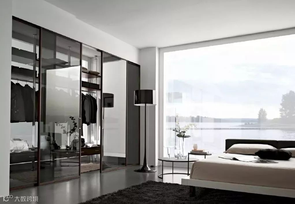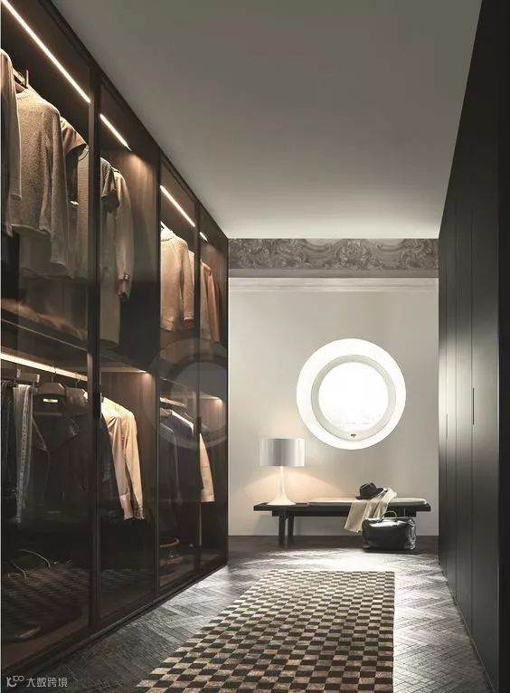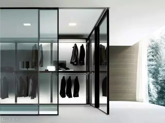 玻璃,折射光芒,透明质感,镜面,对称空间,清晰视角。或许,能够想到的玻璃制品总会给人梦幻、现代的感觉。透明玻璃衣橱往往会选择黑色门框,这样可以更加突显简洁、清爽。没有做包覆处理,使衣柜更简单,更有设计感!
