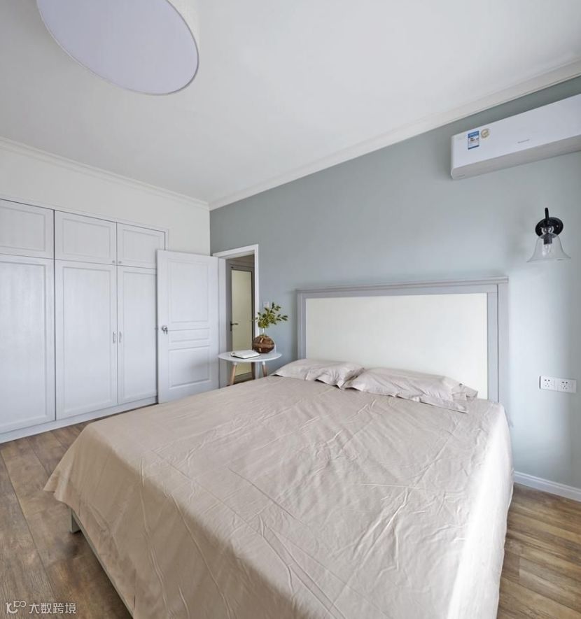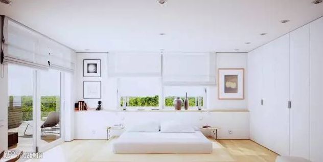 自然的极简主义不必那么明亮。 这间卧室使用轻松的柔和色调。