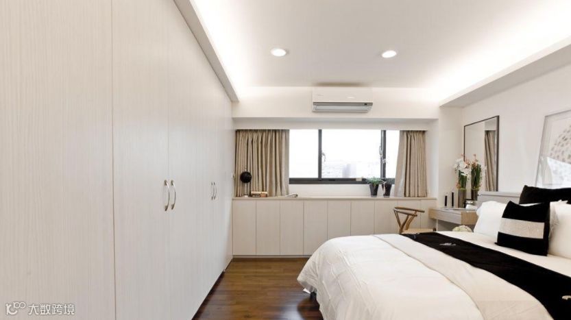 使用这样的窗户,选择低床保持视线是有意义的。 这个房间在艺术品,窗户和橱柜之间有很多,所以低床平台最小化一个视觉杂乱的来源。