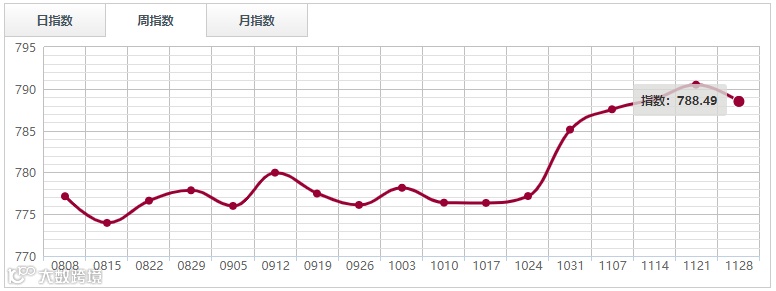 随着下游厂家补仓备货积极性减弱,本周锯材分类指数走出了缩量调整行情,周指数报收788.49点,周环比跌0.25%,全周销量环比下滑1.27%。