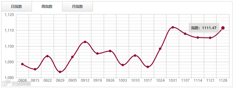 五大市场中,广东鱼珠价格指数(YTI)报收1143.87点,周环比下跌0.07%,全周销量环比微增0.9%,交易额增加0.73%;上海福人木材价格指数(FTI)报收1314.94点,周环比下跌0.08%,全周销量环比微跌0.29%,交易额增加0.82%;大西南木材价格指数(DTI)报收1270.48点,周环比上涨0.33%,全周销量环比增加3.83%,交易额下滑0.98%;山东临沂木材价格指数(LTI)报收817.74点,周环比下跌1.41%,全周销量环比微跌0.15%,交易额下滑2.35%;江西南康木材价格指数(JTI)报收1620.26点,周环比下跌0.03%,全周销量环比微跌0.22%,交易额下滑0.29%。