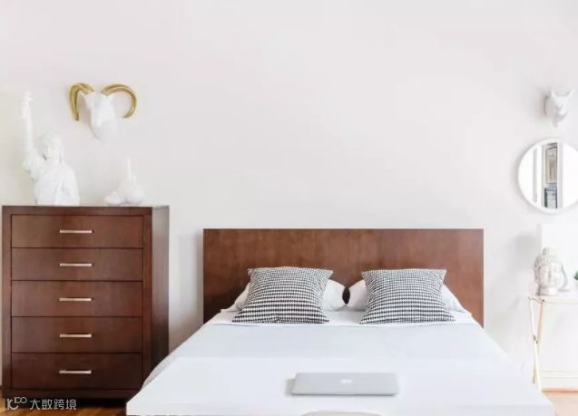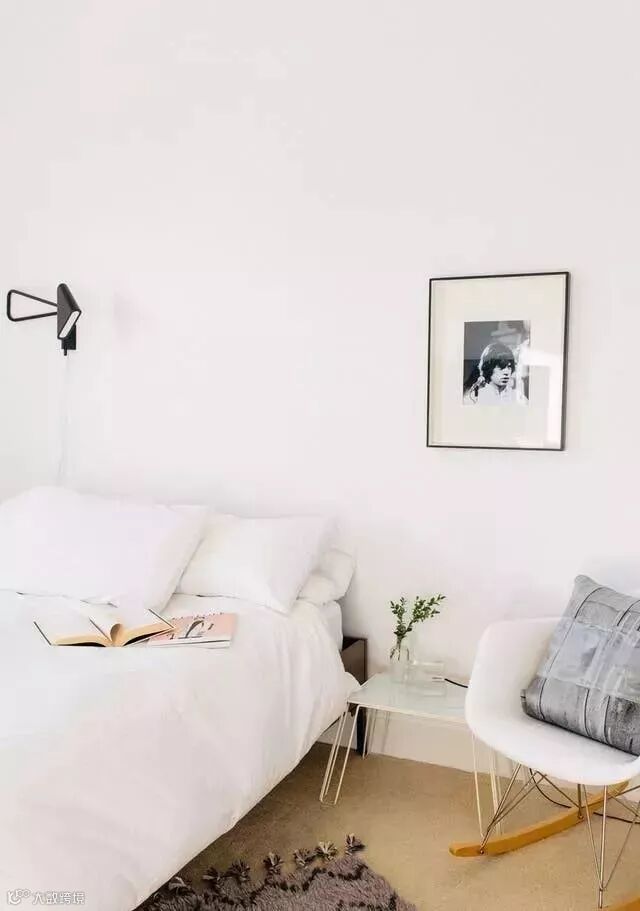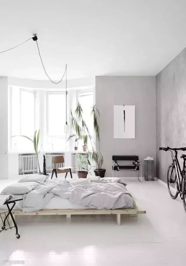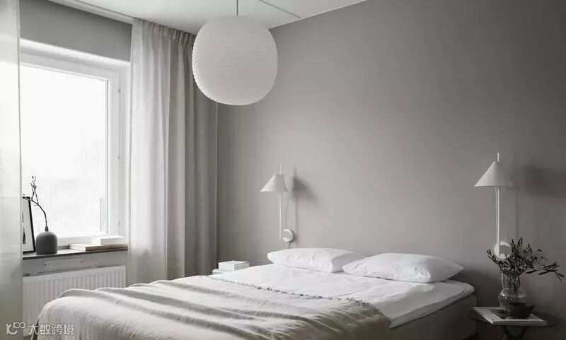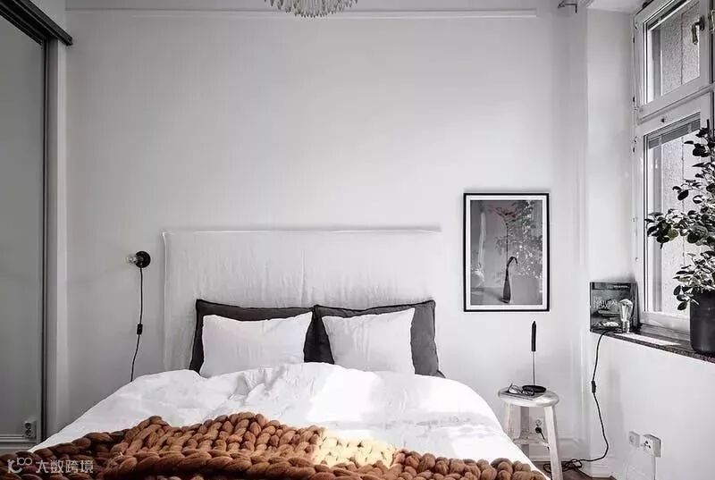 在黑色,白色和灰色的卧室里,可加入一块对比色调的纺织品。
