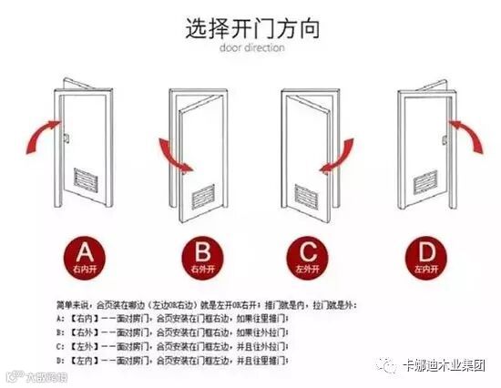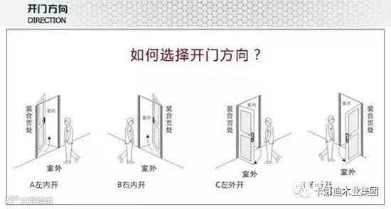 四个方向,这四个方向各不相同。其实在选择开门方向的时候,首先是根据个人的习惯和家人的习惯来选择门开启的方向的,使用顺手才是最关键的。