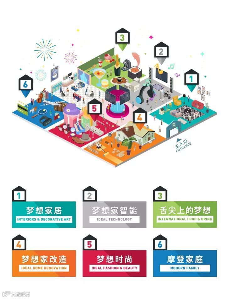 整个展览设立6大互动体验区域,包括梦想家改造,梦想家居,梦想家智能,梦想时尚,舌尖上的梦想和摩登家庭。