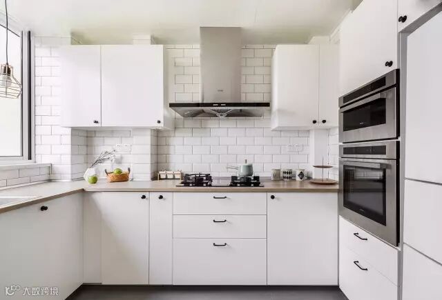 厨房选用了与室内氛围相结合的家具的颜色,无缝衔接洁白无暇融于一体,有时候,简单即是最华丽的装饰。