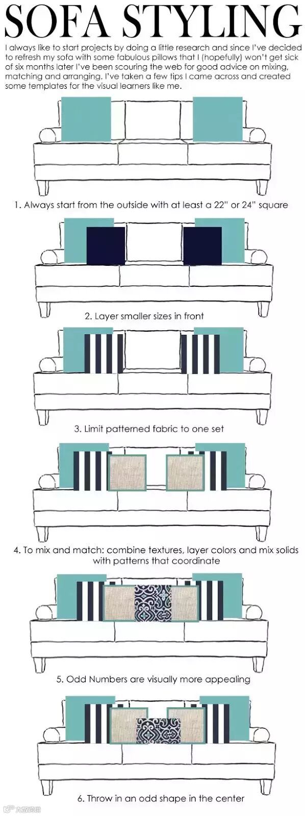 那么,以下六种层次由少到多的靠垫摆放方法,献给处女座及关爱处女座的好房友们,