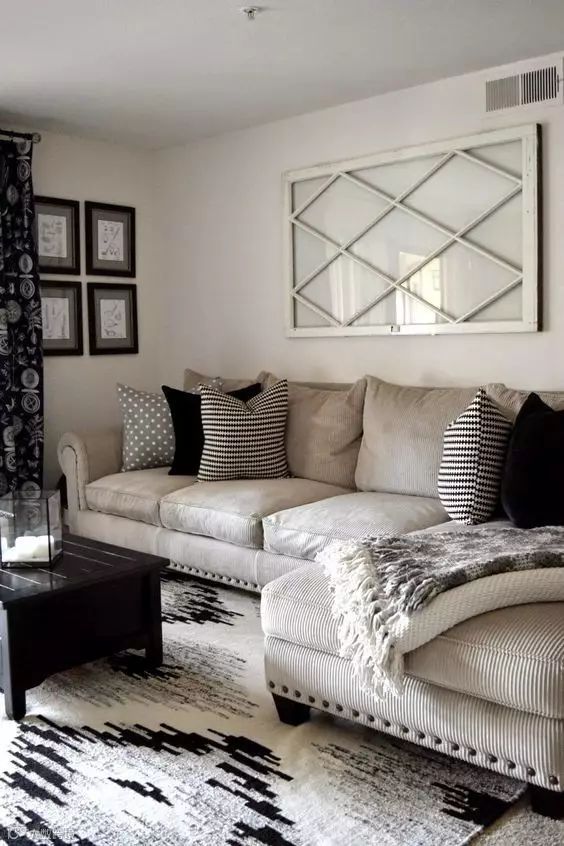 ▲如果沙发是纯深色,那么黑白菱形的地毯就可以登场了