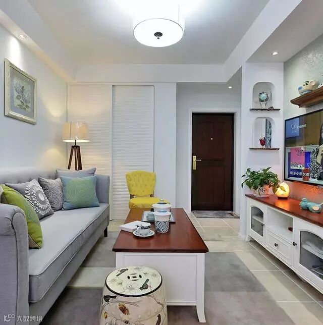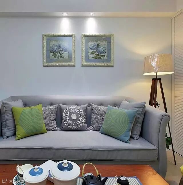 灰色的沙发很适合小户型白墙的设计,看起来很和谐。