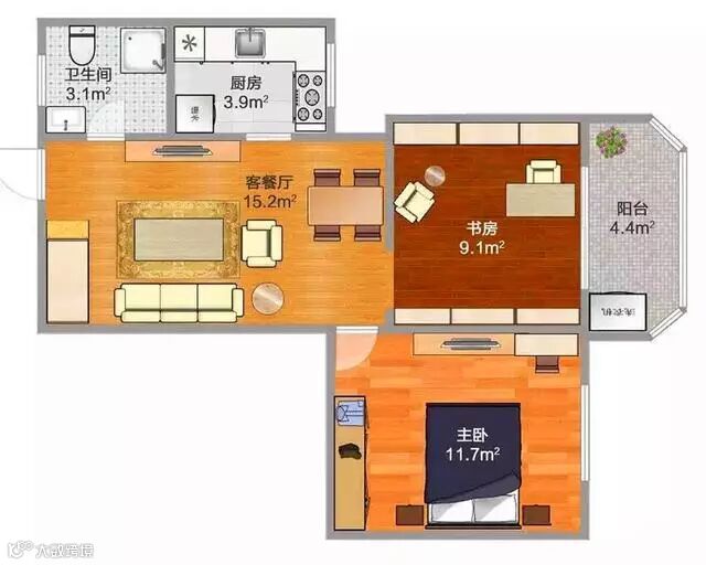 很多人都说美式风格不太适合小户型,这个美式风格的小户型装修,建筑面积66,套内54平的二居室,由于业主近几年都没打算生小孩,就把次卧改成了书房,一起来看下这套房子,是怎样的吧!