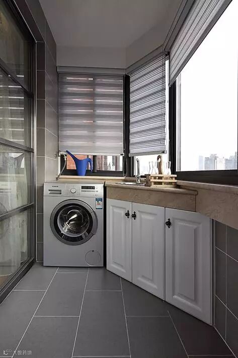 阳台是个弧线形状,洗手台只能做成三角形的柜子,都是窗户,不能做吊柜了。