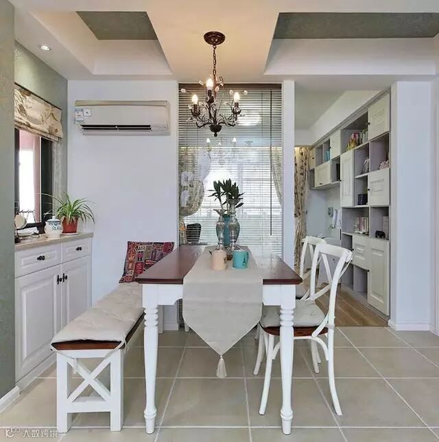 客厅的边上就是餐厅和书房,美式风格的电视柜、茶几和餐桌。