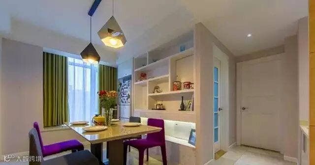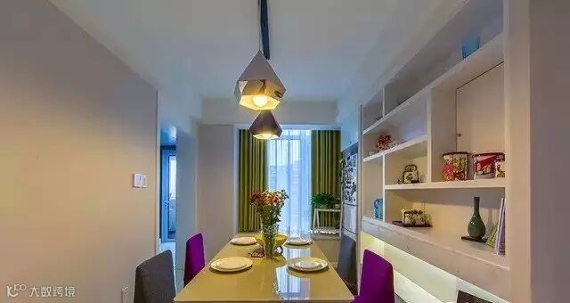 ▲ 紫色和灰色的餐椅搭配也增加了时尚现代感。