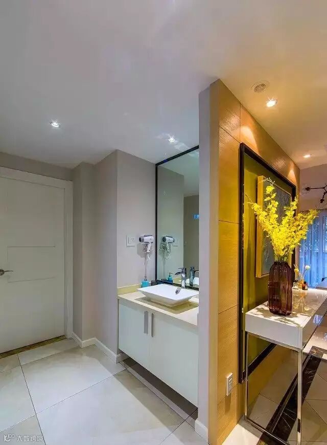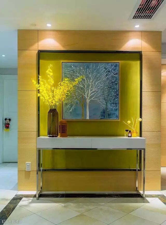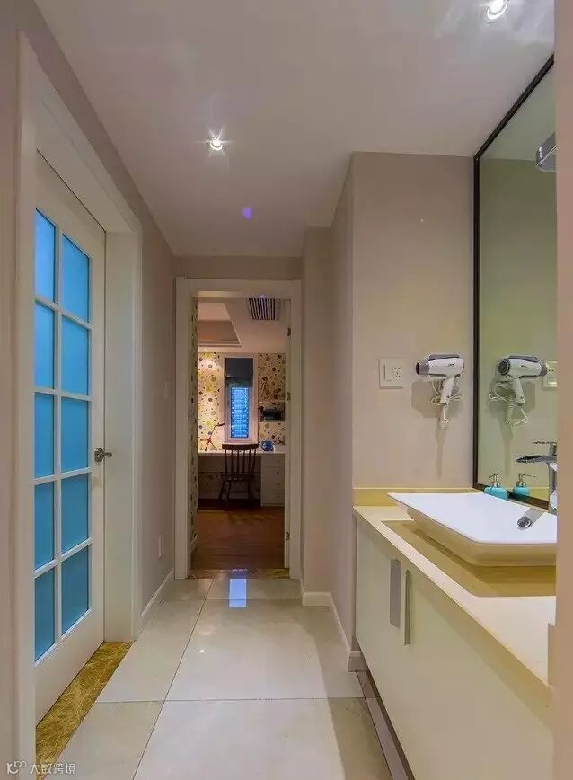 ▲ 进门处是玄关,原本空着,后经设计师建议,改成了现在的空间,方便出门前的梳洗,这样将卫生间的干区分到门厅,就提高了卫生间使用效率。