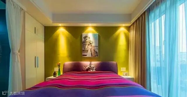 ▲ 这样的背景墙还有一个好处,它隐藏了主卧的门,隐形门天衣无缝哦。