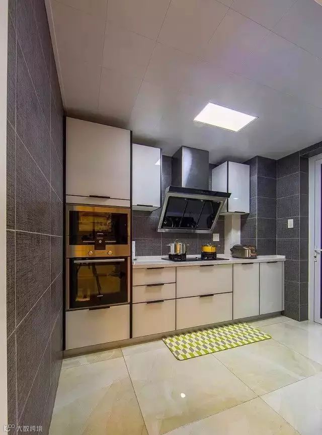 ▲ 厨房配色比较简单,白色和灰色调主打,和客厅的风格迥然不同。