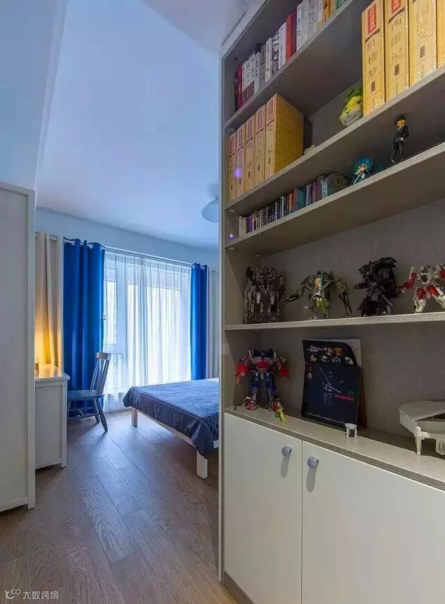 ▲ 另外一个大孩子的房间用蓝色调,整体更加稳重一些。