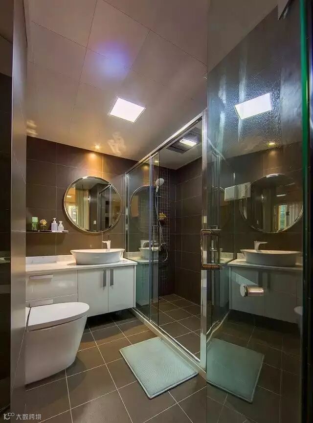▲ 深灰色的墙地砖映衬白色的卫浴,深灰色更加便于打扫清理。