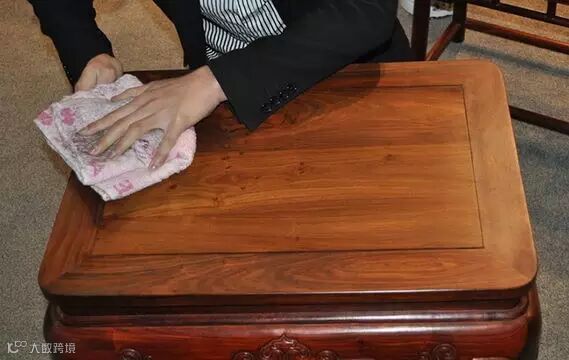 红木家具作为贵重家具,更需要格外注重保养和清洁。擦拭家具表面时切忌用湿布擦拭,因为湿布中的水分和灰砂混合后会形成颗粒,长期摩擦家具的表面,就会对家具造成伤害,令其失去光泽,所以我们最好选择柔软的棉布顺着木纹轻轻擦拭干净。