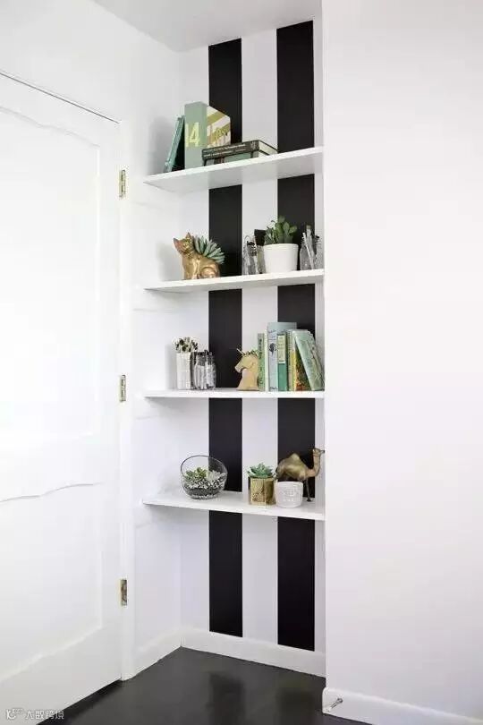 ▲门后空间不足的话,可以采用嵌入式设计。安装几块搁置板,就大功告成了。