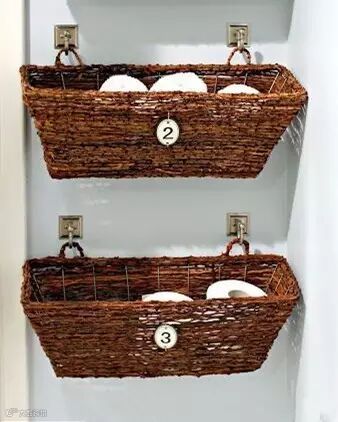 毛巾或是纸巾可以放在藤编筐中,