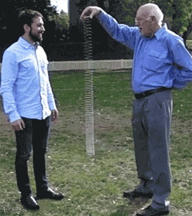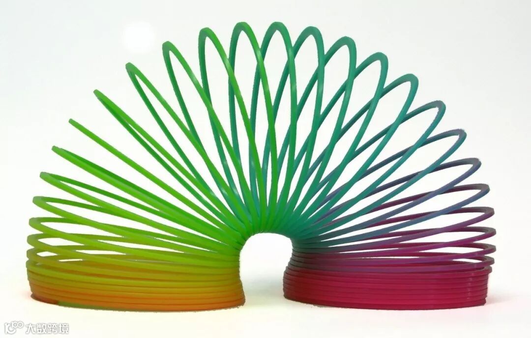 螺旋弹簧玩具坠落的慢动作看起来像是魔法。