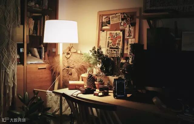 灯光下的工作台,内嵌入墙的书柜是前业主留下的,是不是和新家毫无违和感?