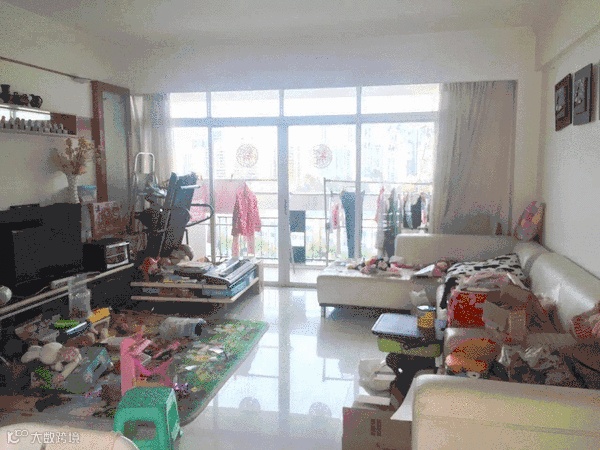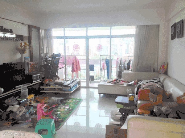 客厅前后对比。硬装方面,敲掉了原本老气的电视墙和玻璃隔断,刷白墙,更显通透大空间!