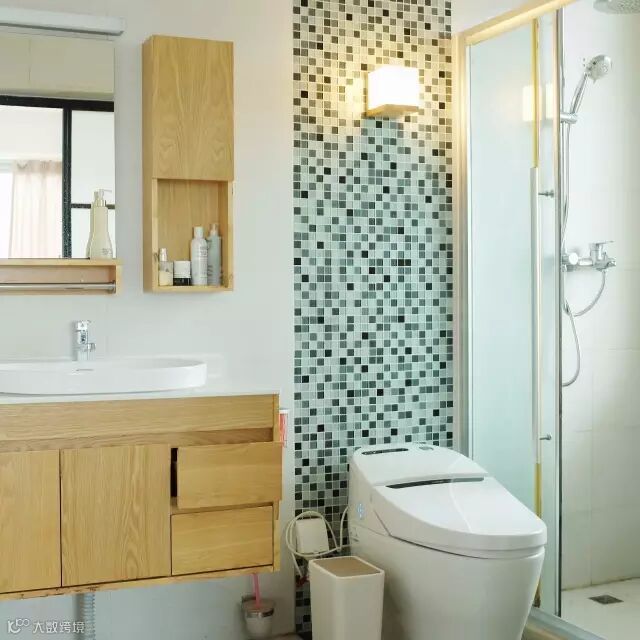 卫生间换掉了原来的马桶、淋浴花洒套装和浴室柜,保留了墙砖、地砖。
