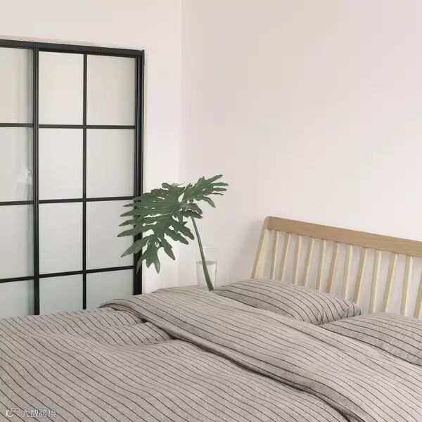 继续沿用原木色的床和床头柜配合内嵌的老壁柜,整套下来,因为颜色和谐统一,原来的装修和新家具也基本融为一体了,不会太突兀。
