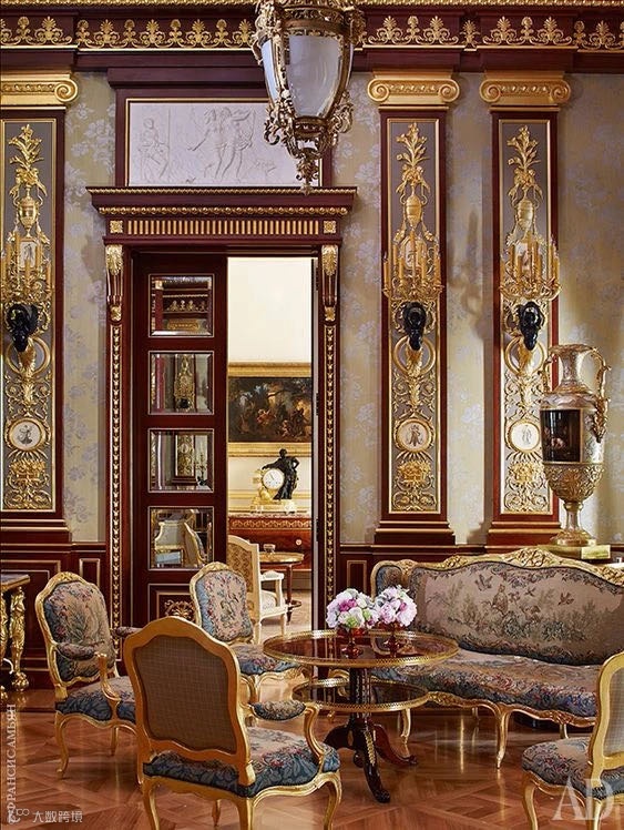 在巴洛克家具的基础上进一步将优美的艺术造型与功能的舒适效果巧妙地结合在一起,以优美的曲线框架配以织锦缎、珍木贴片、表面镀金装饰等,在视觉上形成极端华贵。