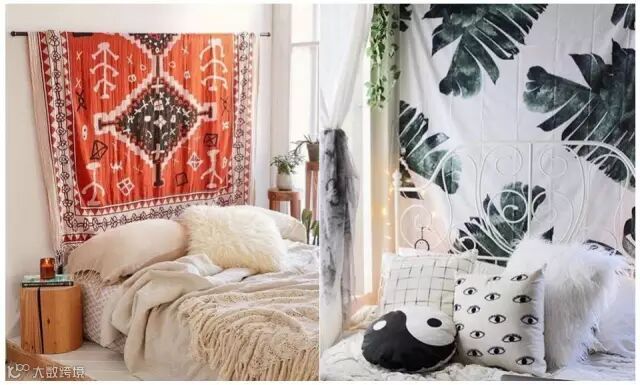 讨厌残旧的白墙?房东不同意重新刷?没关系,虽然没办法大修整,但特别糟糕的位置我们完全可以通过遮挡的办法来补救。比方说用挂墙毯或者是印有漂亮图案的布来覆盖。