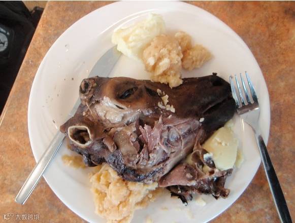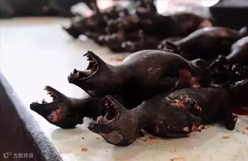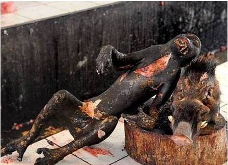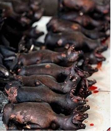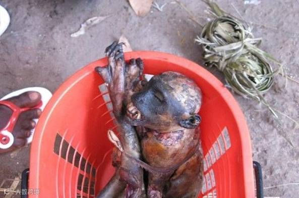 小猴,完完整整的一小只,被拔毛烧过了,还能清楚地看到它狰狞的表情!!!!
