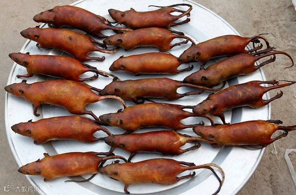 一眼看去以为是小猪,其实这个是刚刚出生的小耗子,当地人喜欢买回去直接生吃,打个蘸水就入口。